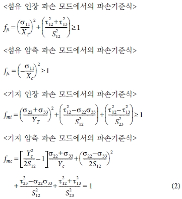 경우에는 각 파손모드(섬유 인장/압축, 기지 인장/압축)에서