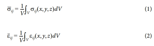 RVE는 복합재료의 거시적 물성을 예측하기 위해 선택된 최소 단위 체적이며, 복합재의 미시구조 특성을 반영하여 물성치를 산정하는 데 사용된다. RVE는 섬유와 매트릭스 같은 이질적인 구성 요소들이 주기적으로 배열된 모델로 구성되며, 이를 통해 복합재 내부의 불균일성과 미시적 특성을 효과적으로 반영할 수 있다. RVE 기반 해석은 복합재의 미시구조가 실제 실험값에 근접하는 높은 정확도의 물성치를 제공하므로, 초기 설계 단계에서 설계 최적화를 가능하게 한다. 이는 전통적인 해석법과 비교할 때 더 정밀하고 신뢰할 수 있는 물성 예측을 가능하게 한다. RVE 기반 해석에서는 주기적 경계 조건이 적용되어 RVE 경계에서 일관된 응력 및 변형률 상태가 유지된다. 이러한 조건은 해석 결과의 일관성과 정확성을 보장하며, RVE 내의 응력 및 변형률 분포를 수치적으로 해석하여 매크로 스케일에서 평균 물성치를 산정하는 데 활용된다. 이는 다음과 같은 수식을 통해 정의된다: