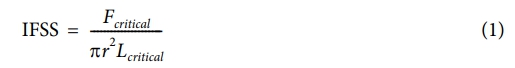 두 추세선을 통해 계산된 임계 함침길이(Lcritical) 및 힘(Fcritical), 섬유의 직경(r)을 활용하여 임계 계면전단강도 (Interlaminar Shear Strength, IFSS)를 계산하였다.