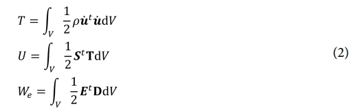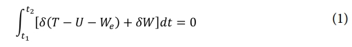 전기탄성(electroelastic) 구성 조건에 대해, 일반화된 해밀턴 원리는 식 (1)로 표현될 수 있다[15]. 이 식에서는 자기 효과(magnetic effects)가 무시되었음을 명시한다.