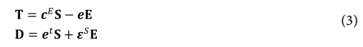 여기서 u, S, T는 각각 기계적 변위 벡터, 기계적 변형률 성분 벡터, 그리고 기계적 응력 성분 벡터를 나타낸다. 전기 변위 벡터는 성분 D로 표현되며, E는 전기장 성분 벡터를, V는 부피를, t는 행렬의 전치를 나타낸다.