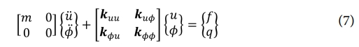 kuu는 기계적 강성 행렬(mechanical stiffness matrix), kuf는 압전 결합 행렬(piezoelectric coupling matrix), kff는 유전 강성 행렬(dielectric stiffness matrix)을 나타낸다. f는 외부 기계적 힘(external mechanical force)을, q는 전하(charge)를 의미한다. 본 연구에서는 정적 작동(static actuation)에 초점을 맞추므로 동적 효과는 고려하지 않는다. 따라서, 작동을 위한 전역 유한요소(FEM) 방정식은 다음과 같이 표현될 수 있다.