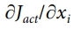 여기서 벡터 L은 시스템의 변위 벡터 U로부터 출력 변위를 추출하는 항목이며, 재료 부피에 대한 부등식 제약은 재료 부피 vi의 합으로 계산된다. 여기서 아래 첨자 i는 요소의 인덱스를 나타내며, 1부터 영역 내 요소 개수 Ne까지의 범위를 갖는다. 앞서 언급된 바와 같이, 요소별 재료 밀도 xi와 극성 Pi는 값이 0과 1사이를 가지는 설계 변수이다. 본 연구에서는 목적 함수 Jact에 대한 민감도