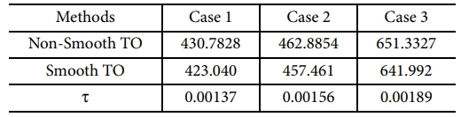 또한, Table 2에 제시된 t 값은 매끄러운 위상 최적화와 매끄럽지 않은 위상 최적화 간의 설계 충실도를 평가하는 중요한 지표로 활용된다. t 값은 Case 1에서 0.00141, Case 2에서 0.0012, 그리고 Case 3에서 0.0011로 점차 감소하는 경향을 보인다. 이는 이방성이 강할수록 매끄러운 설계와의 차이가 줄어들며, 매끄러운 설계가 이방성 재료의 특성을 효과적으로 반영하고 있음을 시사한다. 특히, t 값이 낮을수록 매끄러운 설계가 요소 기반 설계와 더 높은 충실도를 가진다는 점에서, Case 3에서의 낮은 t 값은 강한 이방성 조건에서도 설계의 정밀도가 유지됨을 보여준다.