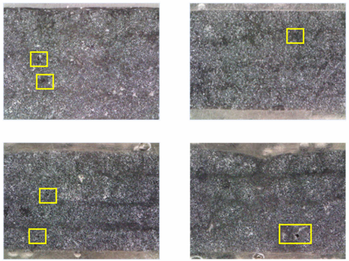 Despite its advantages, the proposed method has certain limitations. Unlike CT and C-Scan, which are inherently non-destructive, cross-sectional imaging via optical microscopy requires specimen preparation, involving embedding, polishing, and sectioning, which is time-consuming and material-intensive. Additionally, the accuracy of AI-based image analysis is dependent on the quality and consistency of the dataset used for training. Insufficient or biased training data may lead to inaccuracies in void fraction prediction.