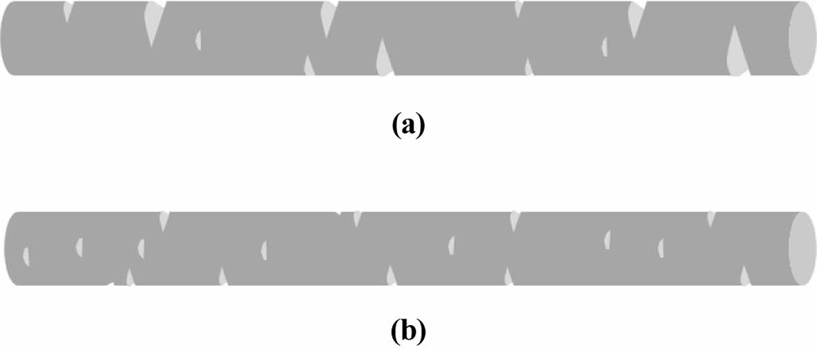 Fig. 7 Scheme of glass fiber surfaces: (a) from 90o fabric; and (b) from 45o fabric |