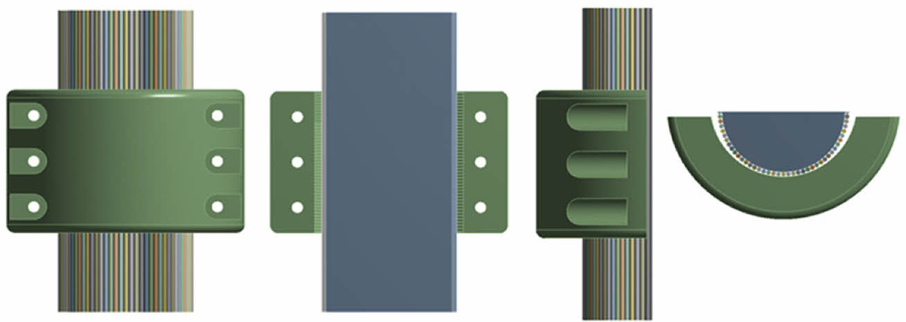 클램프의 경우, 압착 후 케이블 및 보호기자재 중량인 30 kN의 하중이 적용될 때 클램프와 케이블 간 슬립이 발생되지 않는 구속력을 요구하지만 구속력이 너무 클 경우 외곽 케이블 와이어를 손상시킬 수 있는 위험성 때문에 최소 구속력을 도출하는 방향으로 구조해석을 수행하였다.