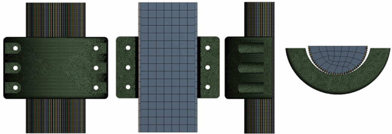 보조 클램프의 격자 생성은 Fig. 2와 같이 해석모델의 형상적 특징을 반영하여 격자를 구성하였다. 클램프는 Tetra 격자, 케이블은 Hexa 격자를 적용하였다. Dummy 모델의 경우 구조부재가 아니므로 격자 사이즈를 주요부재에 비해 큰 사이즈를 적용하였다.