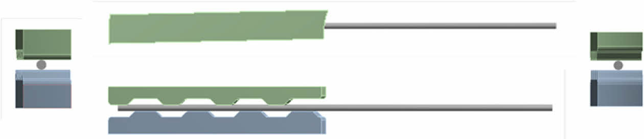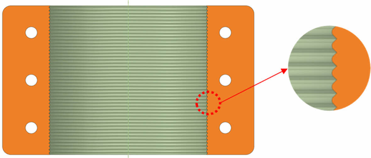 클램프의 돌기는 Fig. 5와 같이 클램프와 외곽 와이어의 접촉 특성 및 해석 수렴도를 높이기 위해 날카로운 돌기대신 둔각의 돌기로 수정하여 해석을 수행하였다.