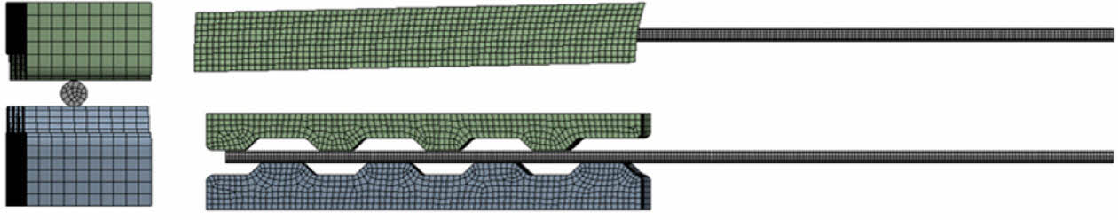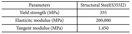 두 클램프 및 외곽 와이어는 S355J2를 소재로 사용하였다. 일반적인 설계에서는 선형범위 내에서 해석을 수행하지만 본 연구에서는 압착 과정에서 발생되는 대변형에 따른 비선형성을 고려하기 위해 비선형 재료를 적용하였다. 재료 모델은 Table 1과 같이 항복강도는 355 MPa, Tangent Modulus는 1,450 MPa를 적용하였다.