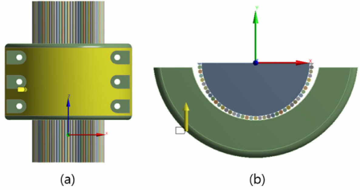 보조 클램프의 경우 Fig. 1와 같이 슬립이 발생하지 않는 마찰하중을 도출하기 위해 와이어와 클램프를 중심으로 모델링하였다.또한, 케이블의 내부 구성요소는 해석의 수렴성을 위해 Dummy 모델로 가정하였으며, 재질은 강재(steel)로 적용하였다.