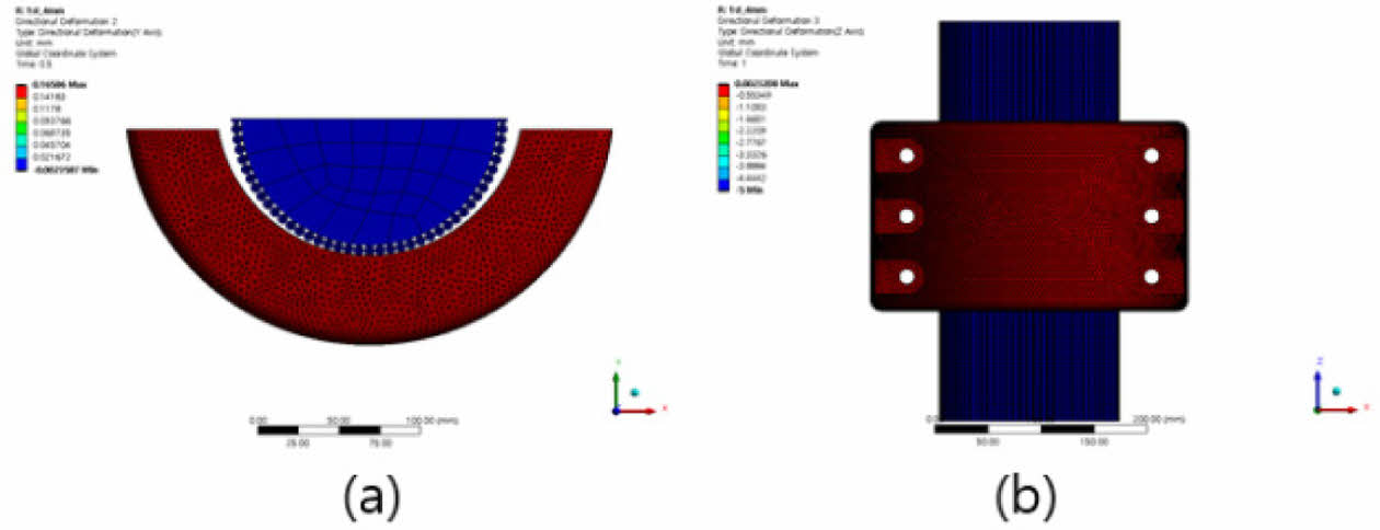 경계조건은 변위를 제어하여 클램프가 압착되는 방향을 제외하고 모든 변위(x, z축)를 제어하였다.