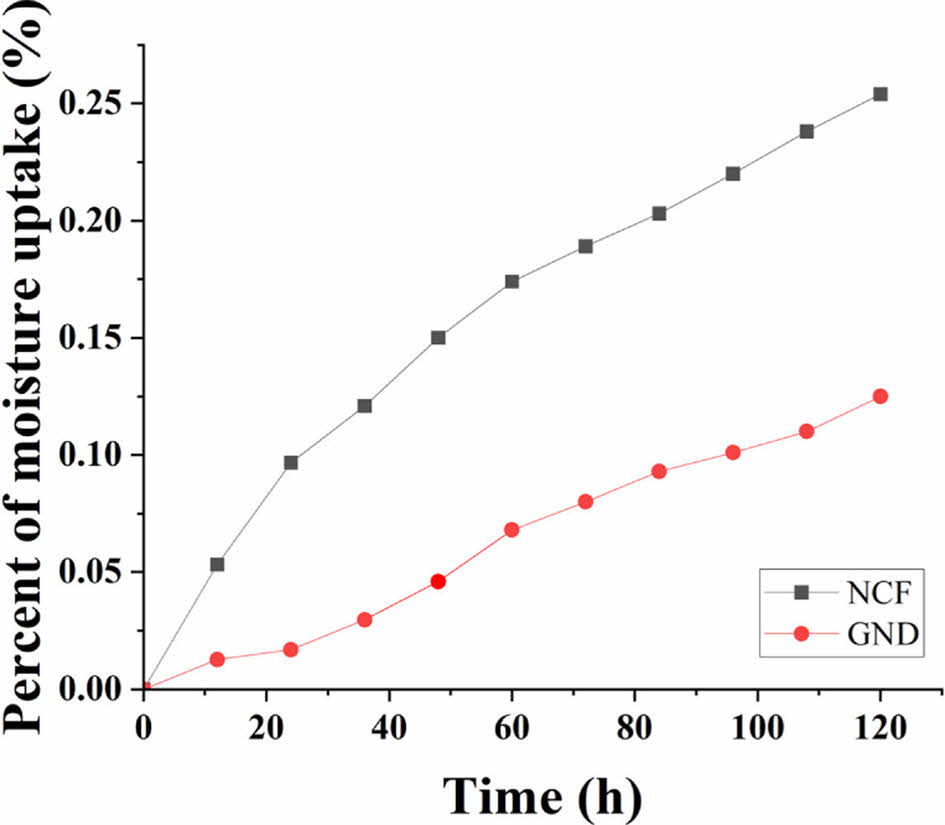 Fig. 14 Moisture absorption curves of the NCF & GND |