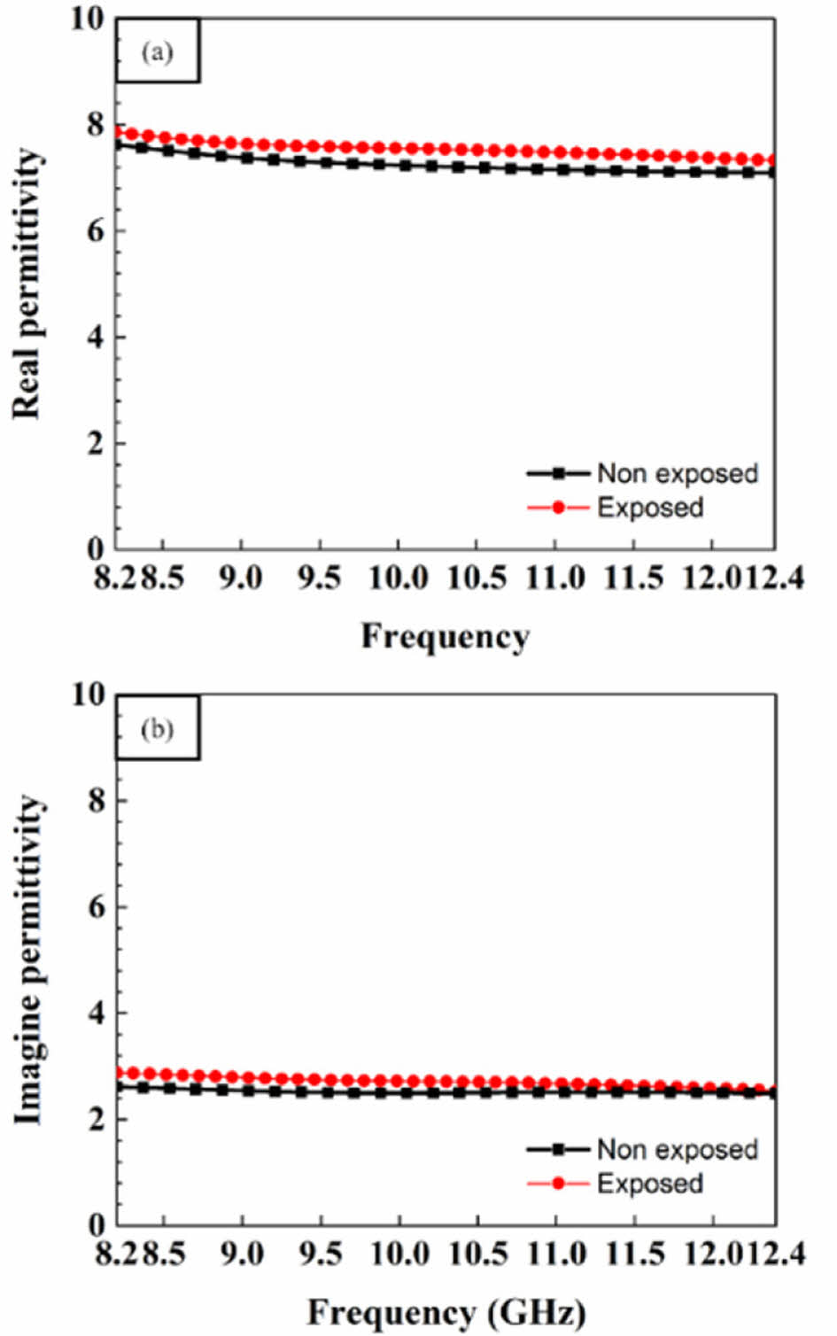 Fig. 20 (a) Measured real permittivity of NCF, (b) Measured imagine permittivity of NCF after environmental test |