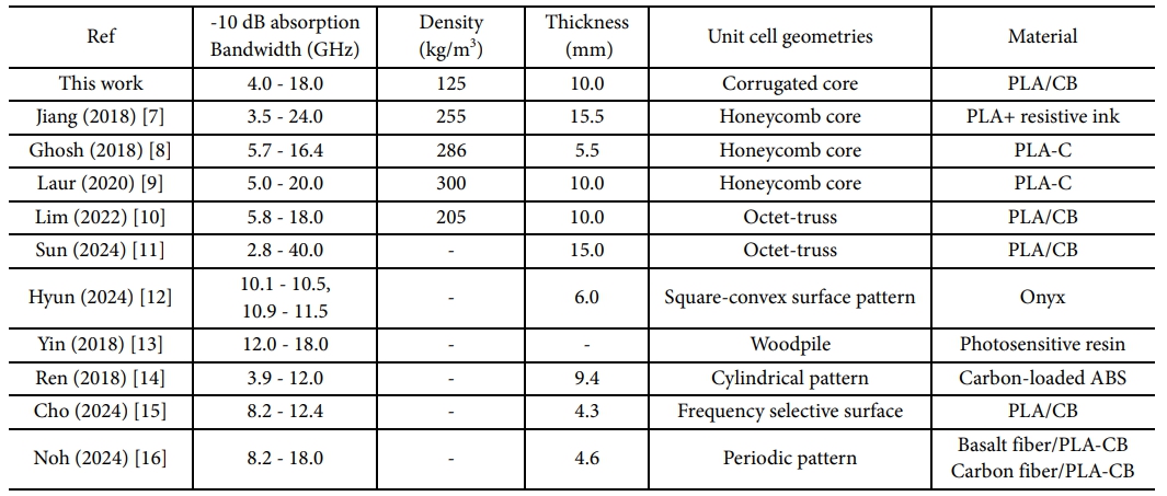 Table 1 Comparison of recent literature on 3D-Printed radar-absorbing structure |
