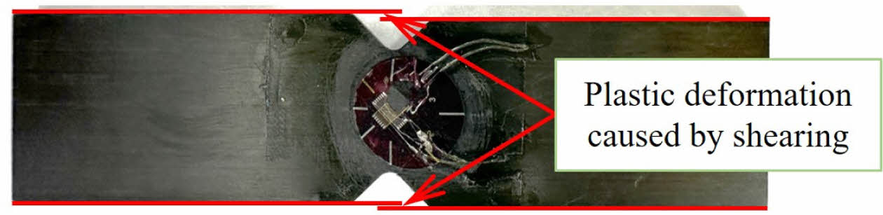 파손 모드는 Fig. 13에 나타내었으며, 모든 연차의 시편에서 전단 하중에 의해 발생한 국부적인 소성 변형이 반복적으로 관찰되었다.