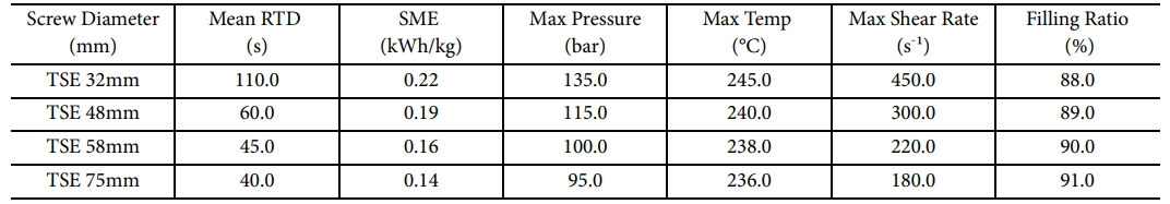 Table 5 Comparison of Key Process Parameters by Screw Diameter Based on Simulation |