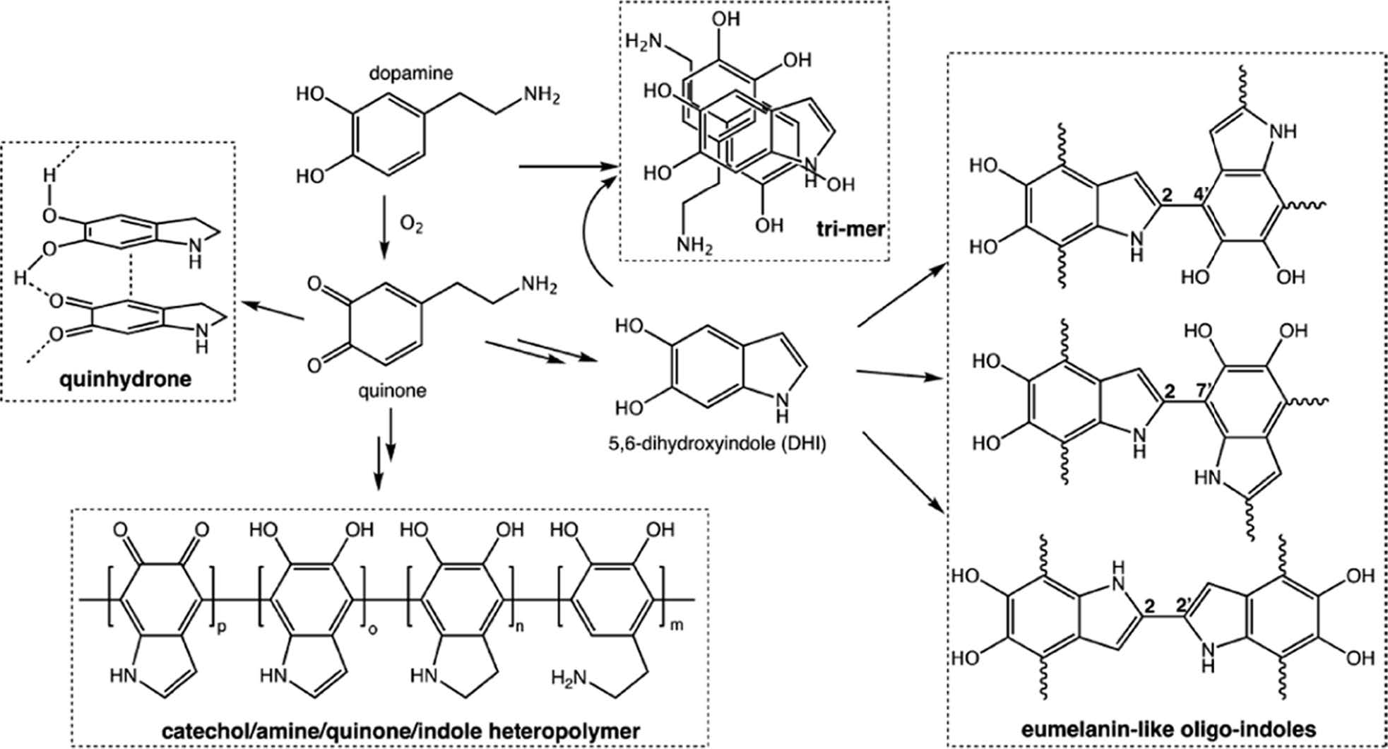 Fig. 4 Current theories of polydopamine structure and formation. Reproduced with permission [36]. Copyright 2018, American Chemical Society |