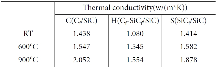 Table 4 Thermal conductivity measured at RT, 600℃ and 900℃ respectively for CMC specimens |