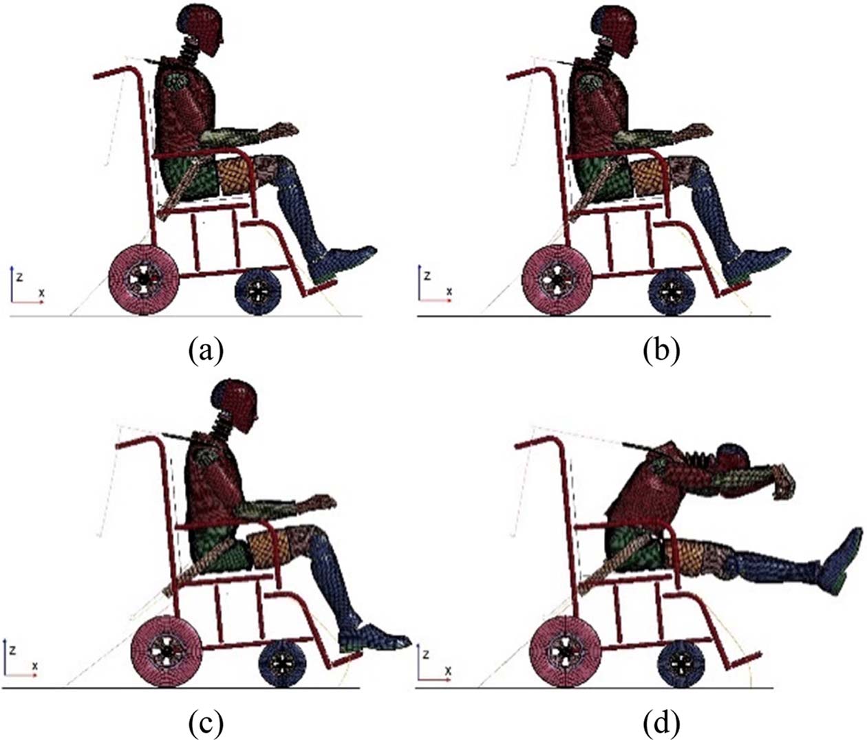 Fig. 3 Dummy behaviour: (a) 0 ms, (b) 50 ms, (c) 100 ms, (d) 150 ms |