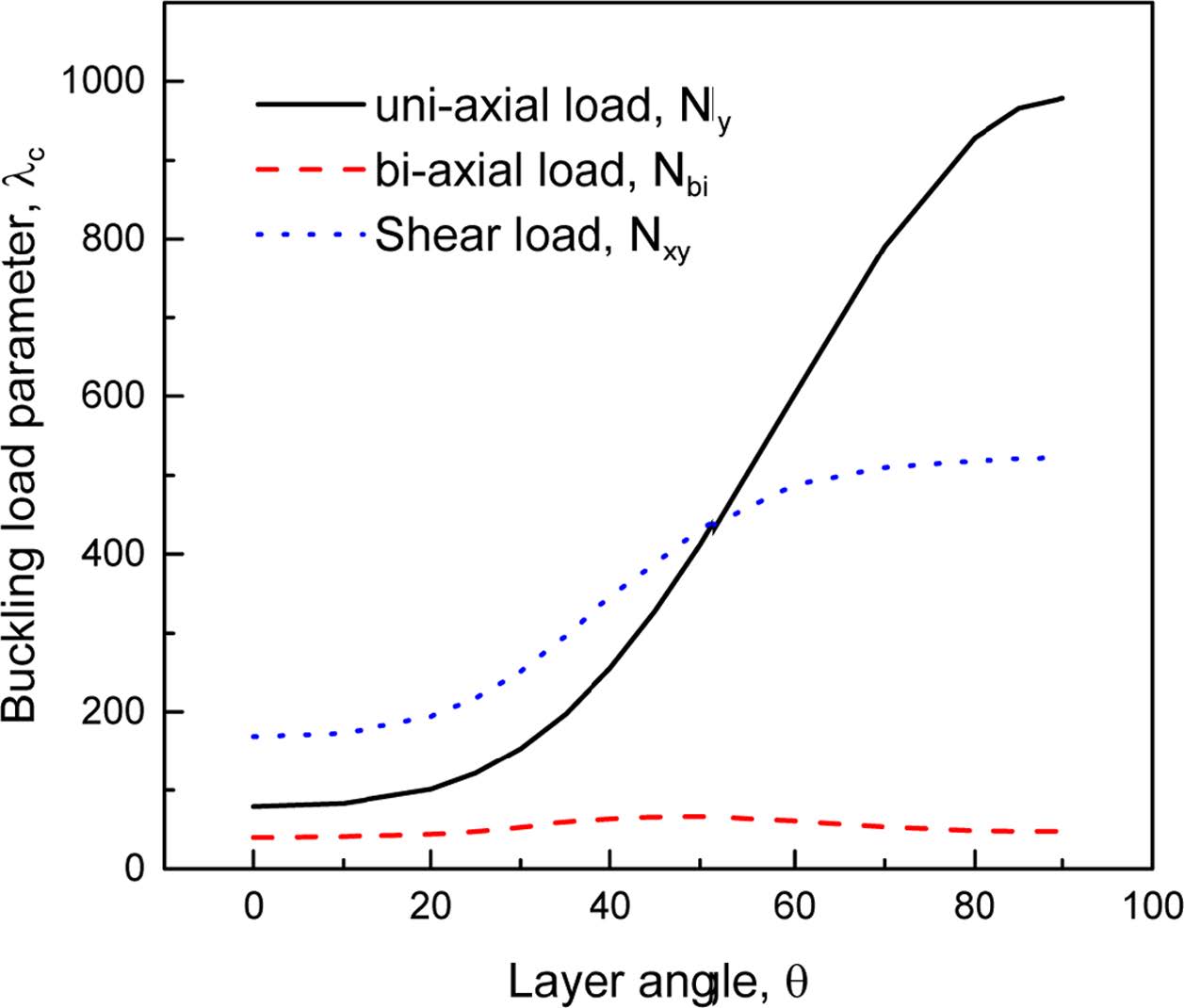 Fig. 4 Effect of layer angle on buckling load |