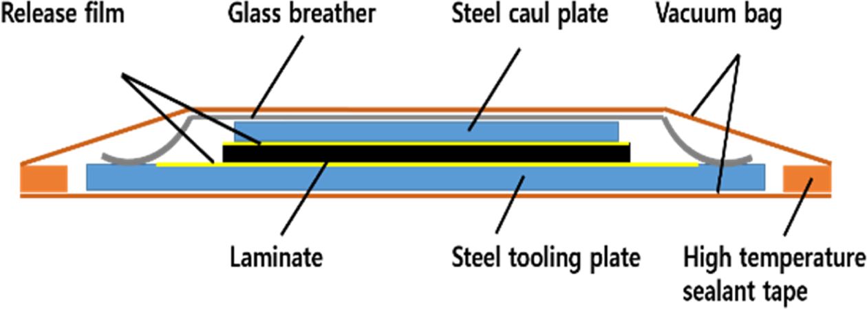 오토클레이브에서 진공백 공정으로 추가 가압없이 1기압으로 제작되었다. 제작된 열가소성 복합재는 진공 부자재의 원활한 탈형을 위해 사용된 고온용