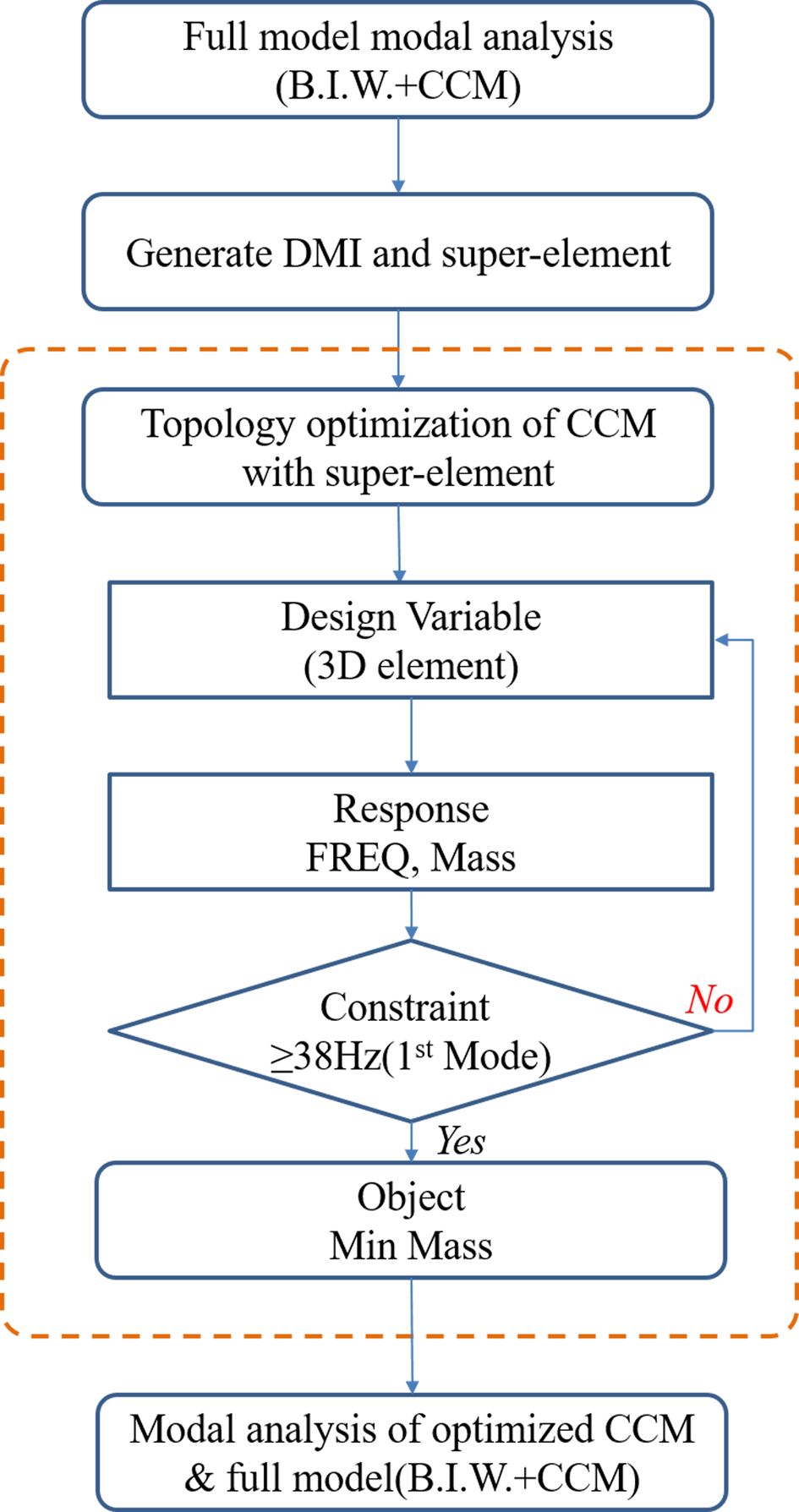 Keywords: : DMI (Direct matrix input), Craig-Bampton nodal method, Topology optimization, Super-element, NVH (Noise, vibration and harshness), Multi-material
