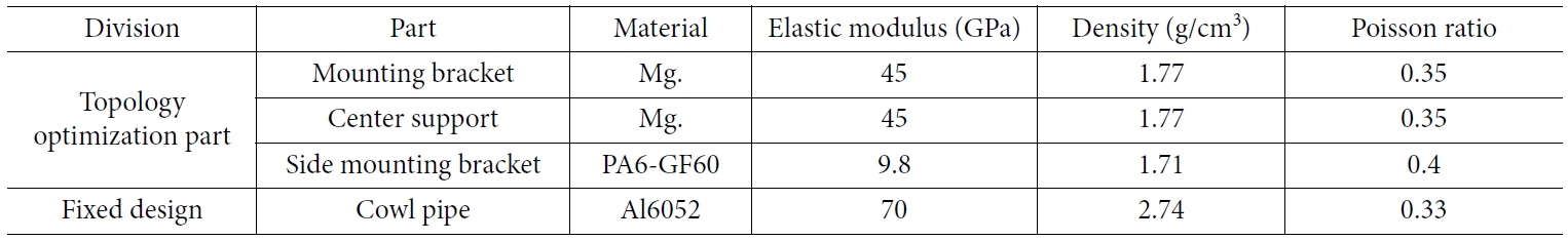 materials of components are magnesium and composite (PA6-GF60: 60% long strand