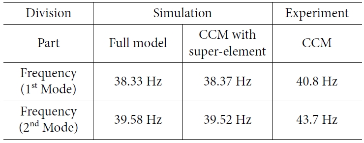 the full model and only the CCM using the super-element are 38.33 Hz and 38.37