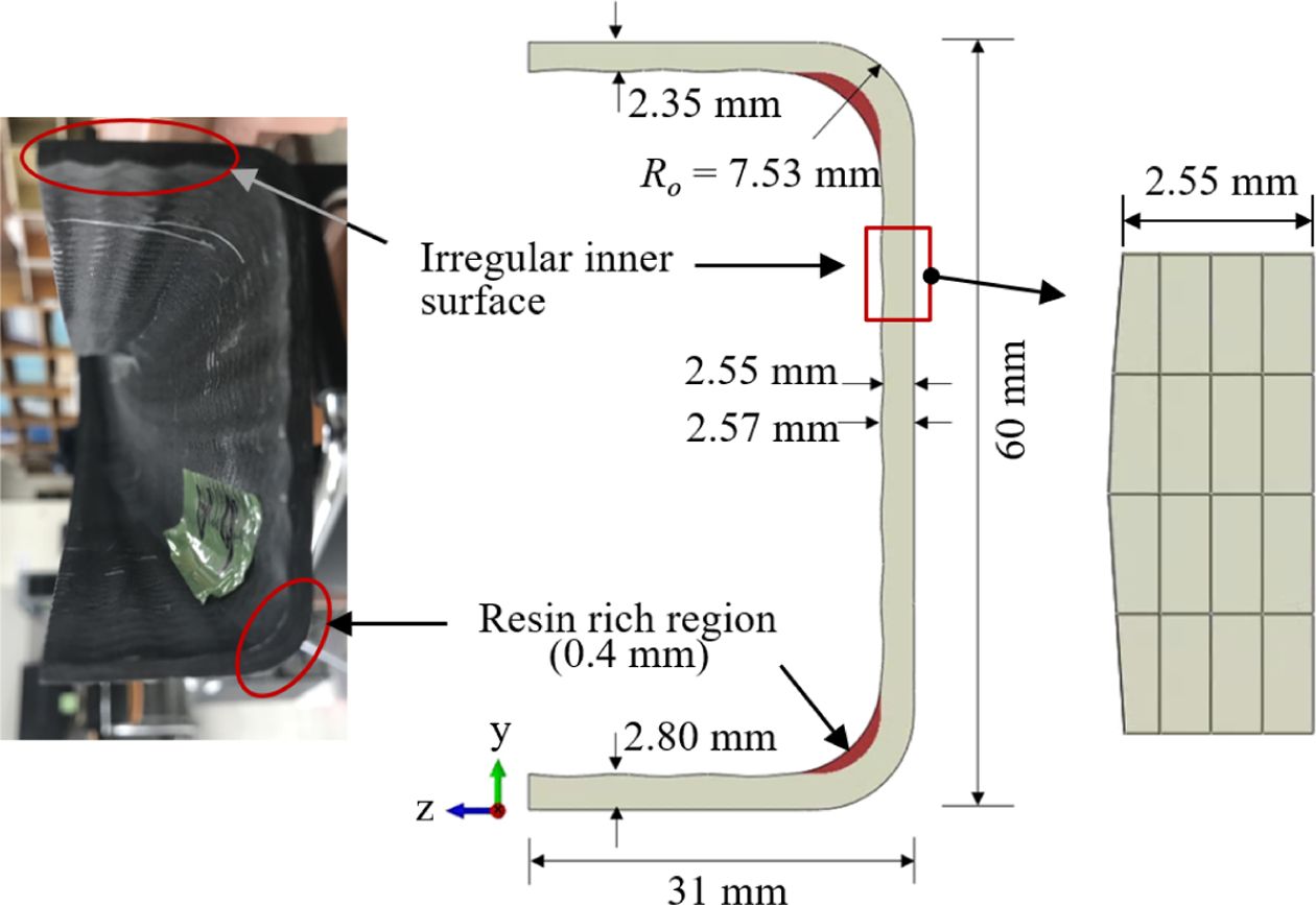 refers to a model with averaged cross-sectional dimension and 3o specimen