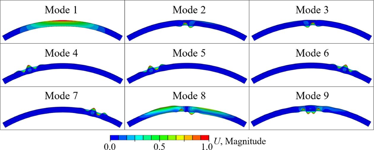 Fig. 8 Linear buckling modes (Disp. scale = 25) |