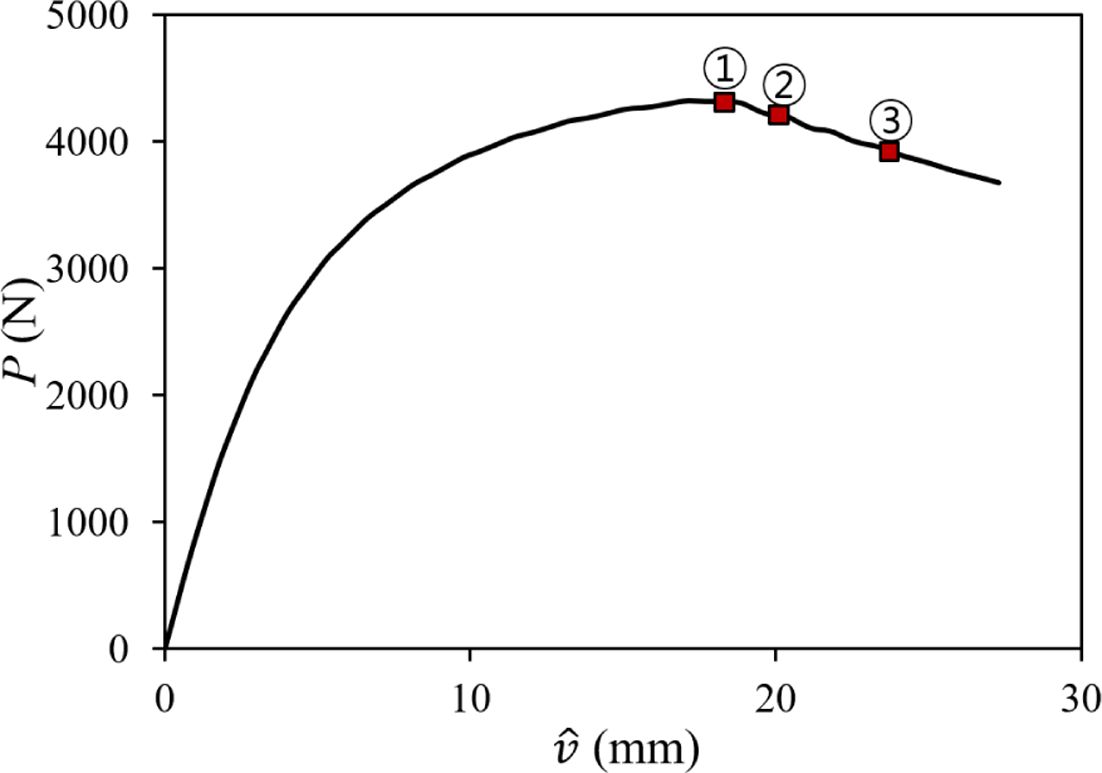 deformation (mode 1). Then, when the displacement loading increased to 16.2 mm,