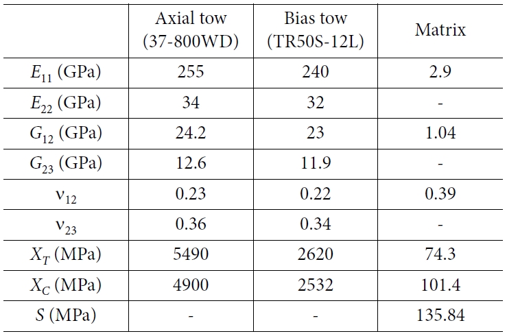 & Composites, Inc.) and the bias tow from TR50S-12 fiber (made by Grafil