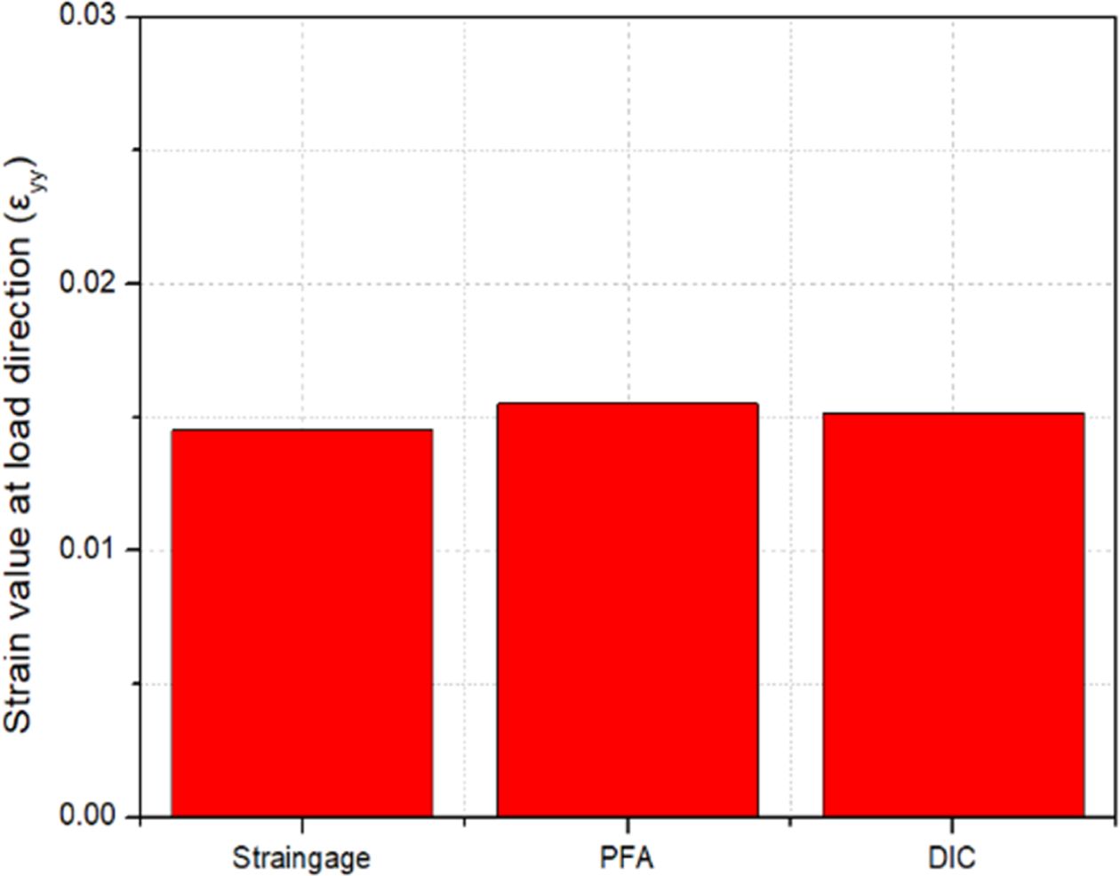 디지털이미지상관법을 통해 획득한 변형률, 그리고 PFA를 통해 획득한 변형률의 비교를 수행한 결과, 전체적인 변형률 분포나 비교한 값들에서 유사한