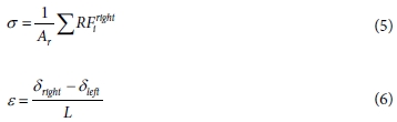 여기서, Ar, 는 하중경계조건 부분의 면적, 절점 i에서 작용하는 반력을 각각 의미한다. 또한, dright, dleft은 RVE의 오른쪽 면과