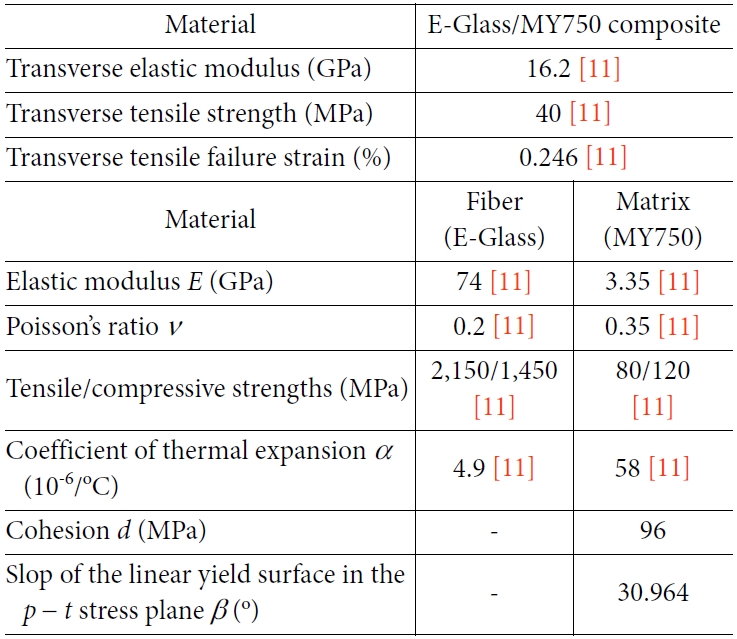 E-Glass /MY750으로 각각의 물성은 Table 2와 같다(참고문헌[11]의 Table1~3및 Fig. 4).