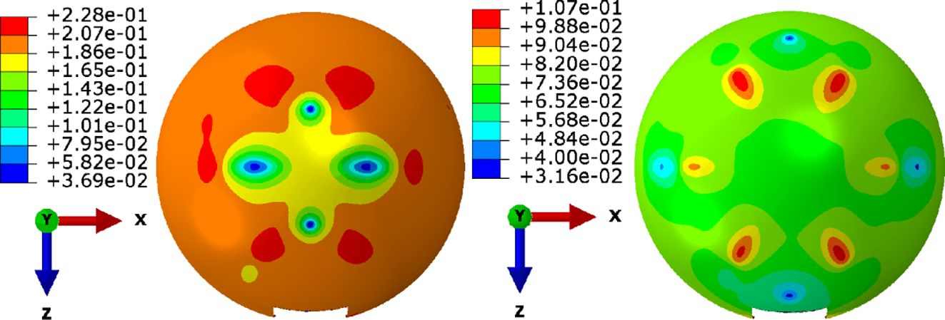 to minimize the deformation of the sphere curvature. Finite element analysis is