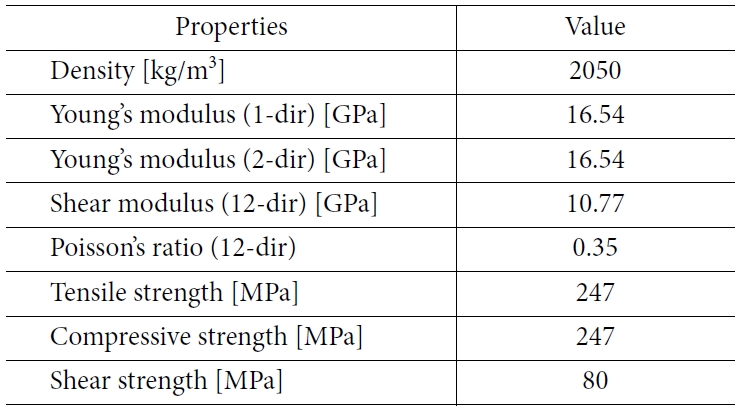 구조 안정성 평가를 위해 유한요소해석을 수행하였으며 재료에 대한 기계적 물성은 ASTM 규격에 따라