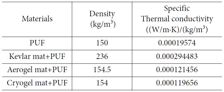 적용되는 PUF에 대하여 복합 단열 매트를 보강하였다. 복합 단열 매트는 극저온 환경에서 운용이 가능한 케블라, 에어로겔, 크라이오겔 매트를 선정하였다.