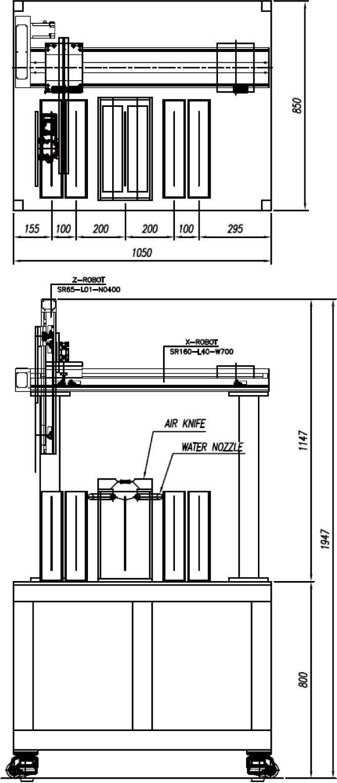 스테인리스 프레임, 스텝핑 모터, 로봇 암, 공압용 솔레이드 밸브, 헹굼을 위한 노즐과 건조를 위한 에어 노즐, 코팅 용액 저장소, 헹굼과 건조 청소 구역,