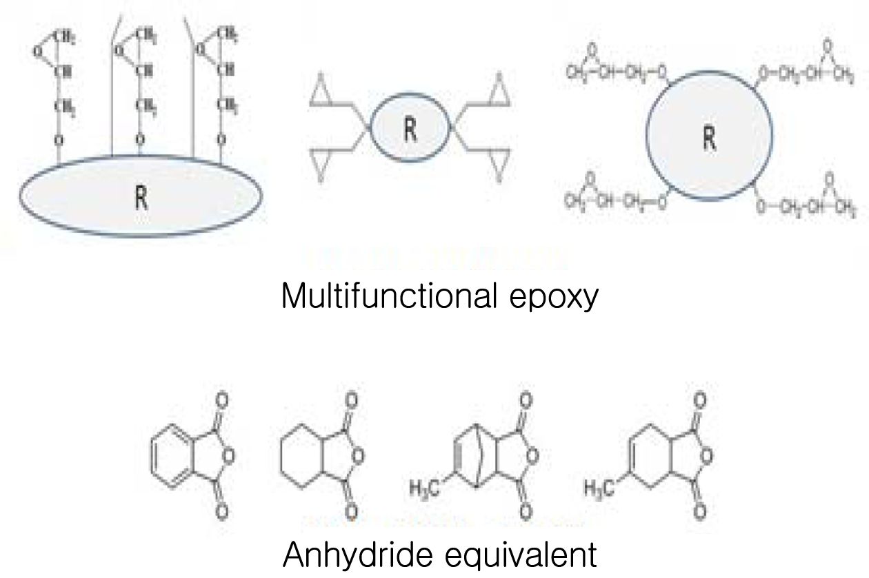 안전성 확보를 위하여 높은 함칭성 및 유리전이온도 180oC 이상의 고내열성을 갖는 에폭시 수지가 필요하다[7].
