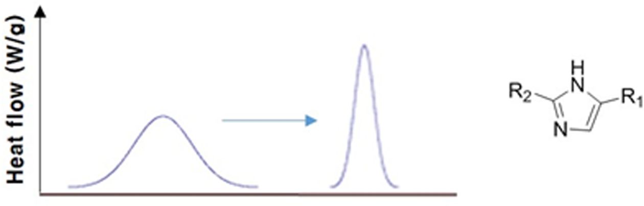Imidazole은 경화촉진제로써 사용되며 산무수물계 경화제를 사용할 때 같이 사용되어 에폭시의 경화를 일어나게 하는 역할을 한다.
