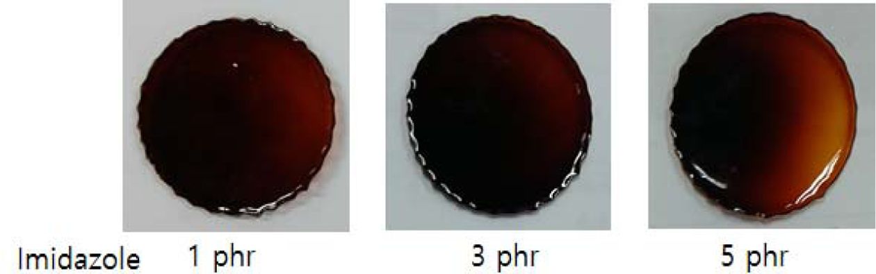 경화촉진제의 함량에 따라 물성이 변할 수 있기 때문에 최적의 경화촉진제 양을 알아보기 위해 경화촉진제의 함량을 변화시키면서 에폭시 경화물을