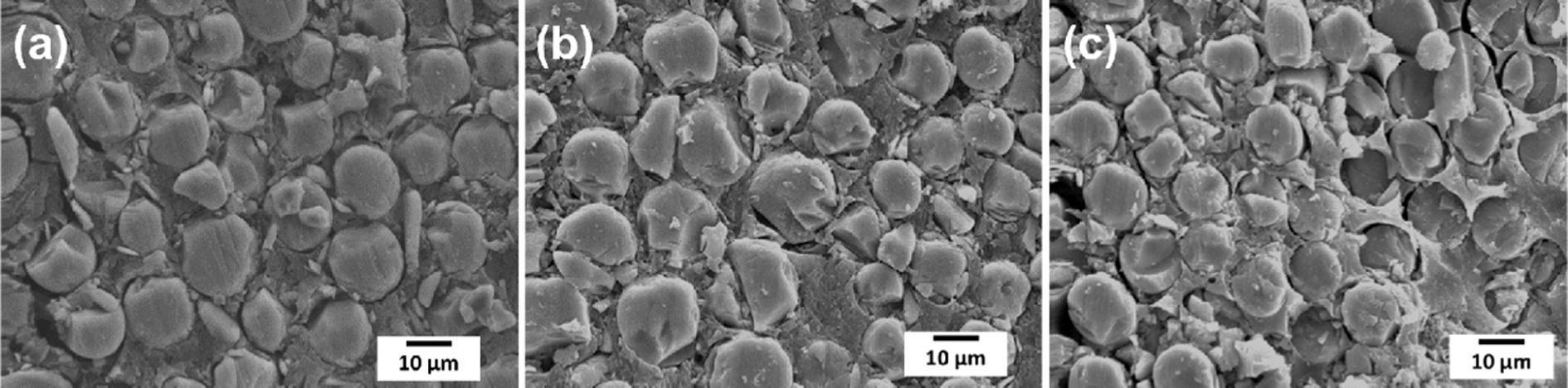 Fig. 4 SEM images of cross section of (a) BFRP, (b) BFRP-MH, and (c) BFRP-AH |