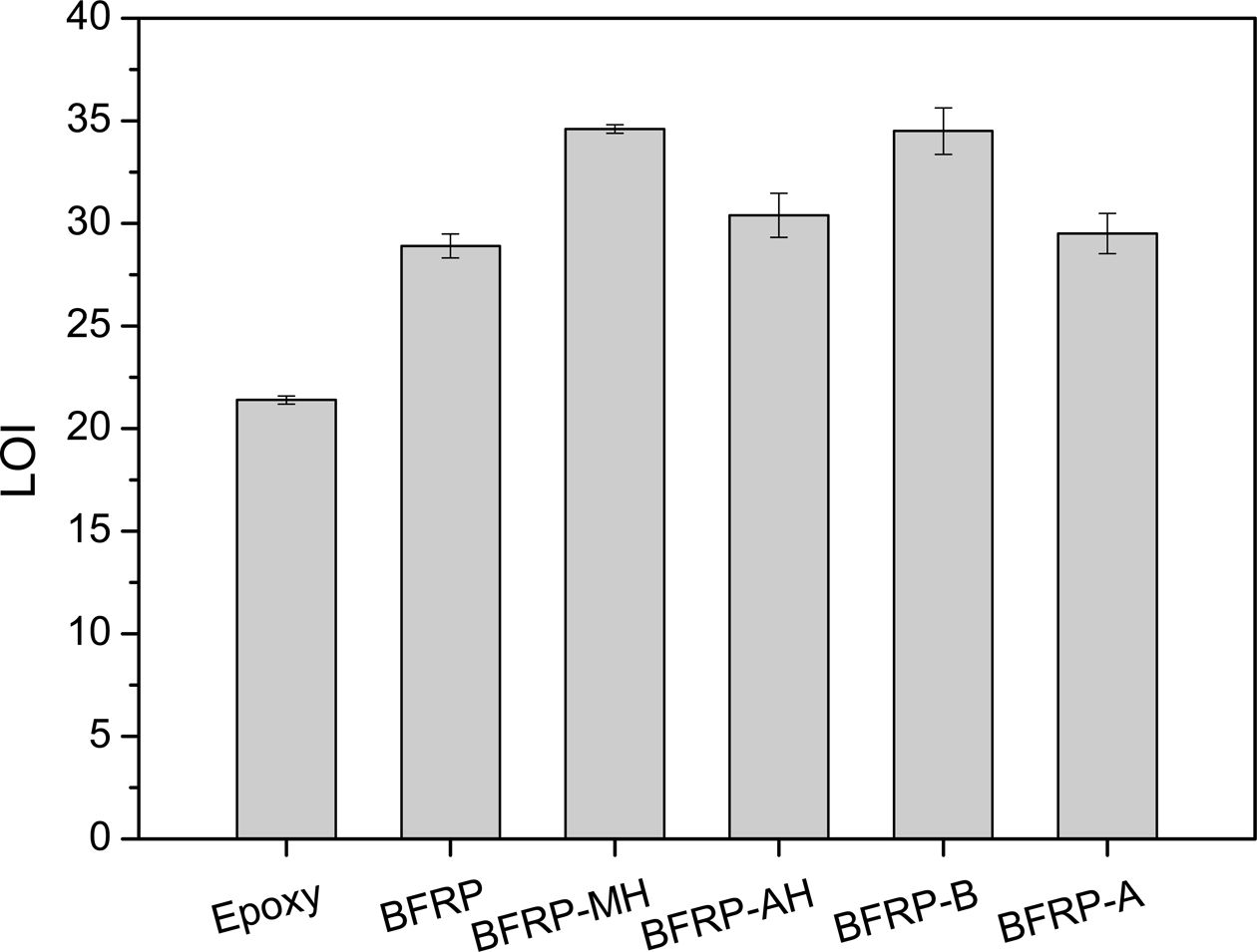 that of epoxy (21.4), and the LOI of BFRP-F is higher than that of BFRP. The