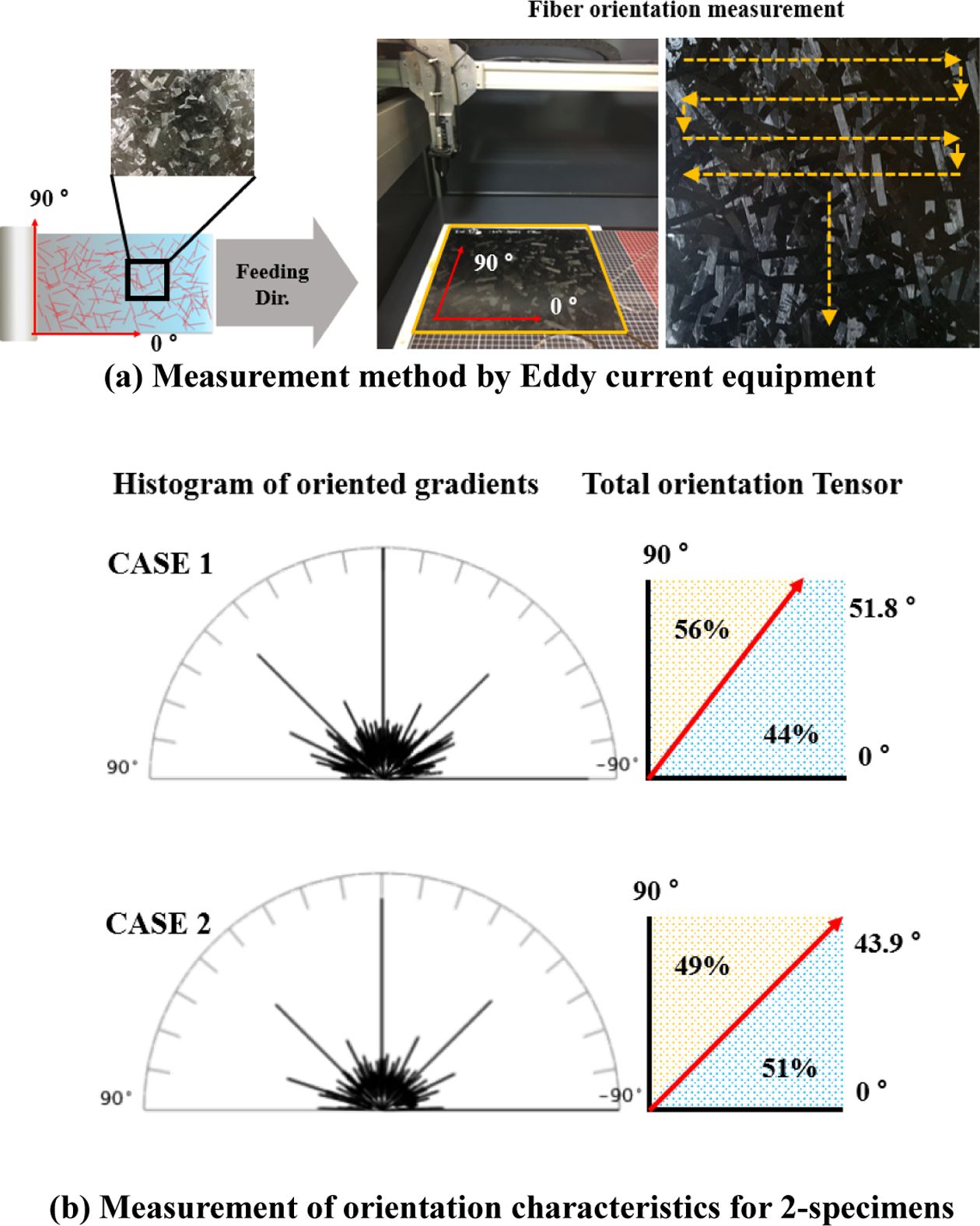 섬유 배향특성을 분석하기 위하여 와류측정방식을 사용하였으며, 이를 통하여 LFPS 시험편 면적 전체에 대한 섬유 배향 텐서(overall