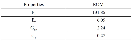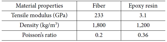 사용되었던 탄소섬유와 에폭시 수지의 기본적인 물성정보를 나타내고있다[3]. 이 물성치는 강성 예측 이론인 ROM을 통해 유효물성치(effective mechanical