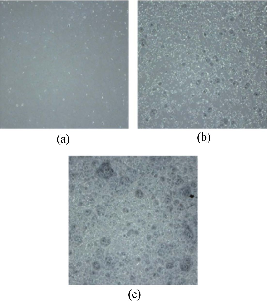Fig. 5 Observation of PU topcoat surface with different CNT weight fraction: (a) 1 wt%; (b) 2 wt%; (c) 3 wt% |