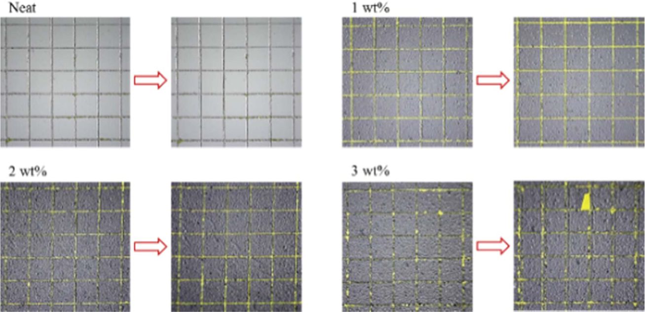 Fig. 7 Photographs of CNT/PU topcoat after cross hatched cut test |