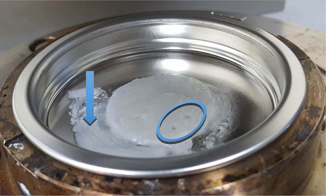 4에서 화살표 부분.), 질소 퍼징 방법 (수분 제어), 중합 시 용해된 질소의 기포 생성(Fig. 4에서 원 부분) 등이 있었다. 이러한 요인들은